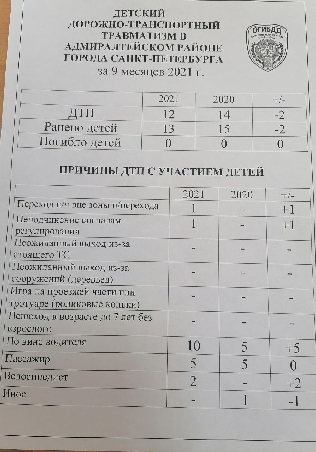 Анализ ДДТТ на территории Адмиралтейского района за 7 месяцев 2021г.