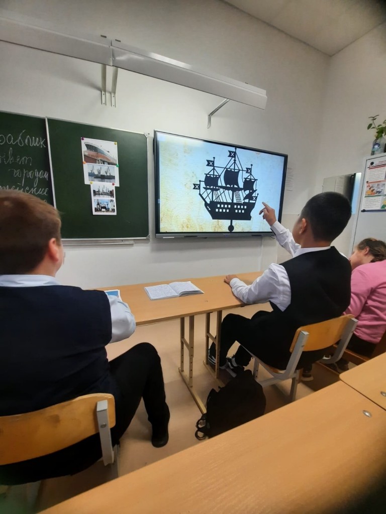 Первое занятие цикла "Кораблик плывёт над городом" было посвящено Адмиралтейским верфям. О легенде мирового судостроения, старейшем предприятии Санкт-Петербурга, которое прошло путь от Адмиралтейства до Адмиралтейских верфей, от фрегата до ледокола, школьникам рассказали воспитатели групп продлённого дня Нина Николаевна Дещинская и Ольга Вячеславовна Голубева.