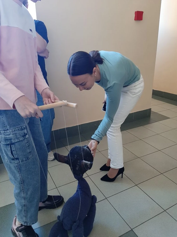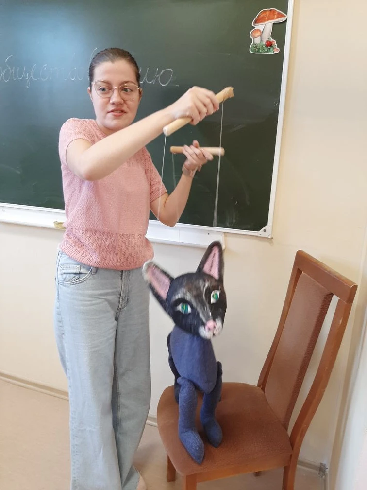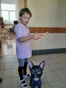 Алиса придумала ей имя, Настя учится ею управлять и озвучивать. А как интересно пройти с ней по школьному коридору! Никто не может устоять, ведь так хочется погладить эту удивительную Кошку.