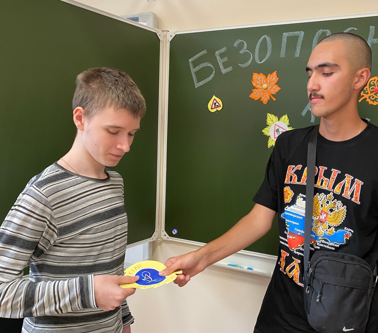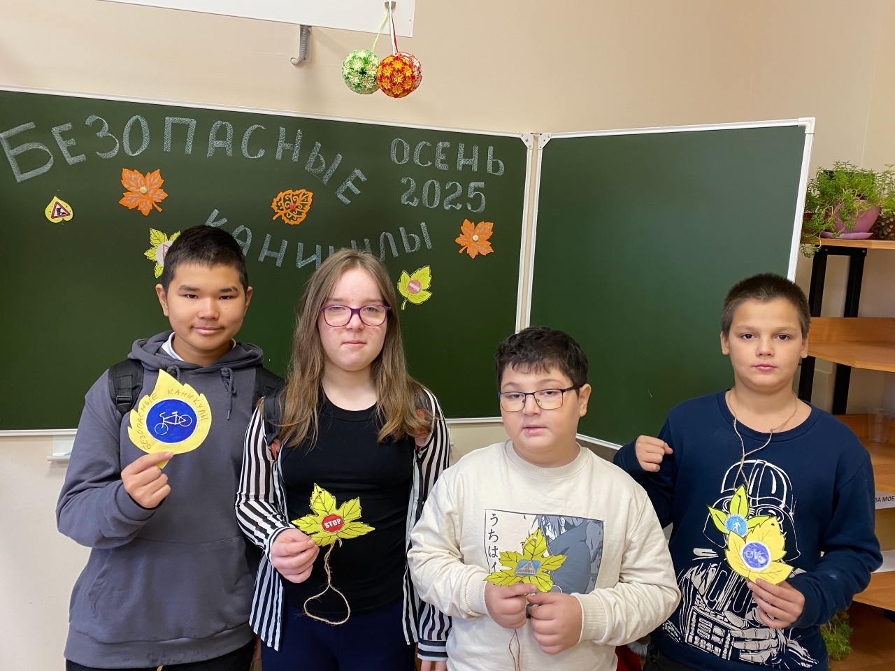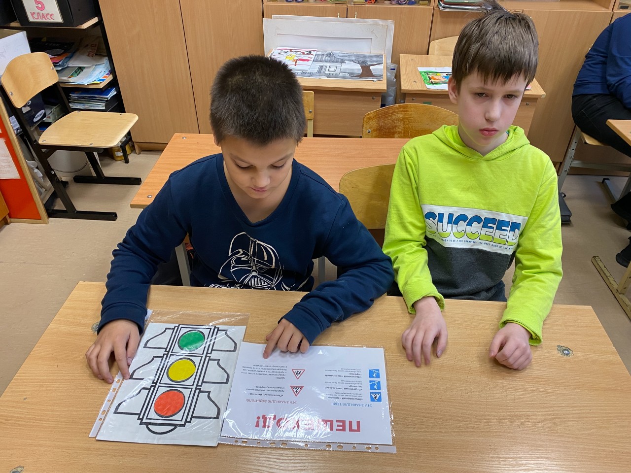 Целью данной акции является профилактика дорожно-транспортных происшествий среди учащихся во время осенних каникул. Ребята повторили правила безопасного поведения на дороге, поиграли в игру «Светофор», изготовили листовки-памятки в виде осенних листьев и раздали их учащимся.