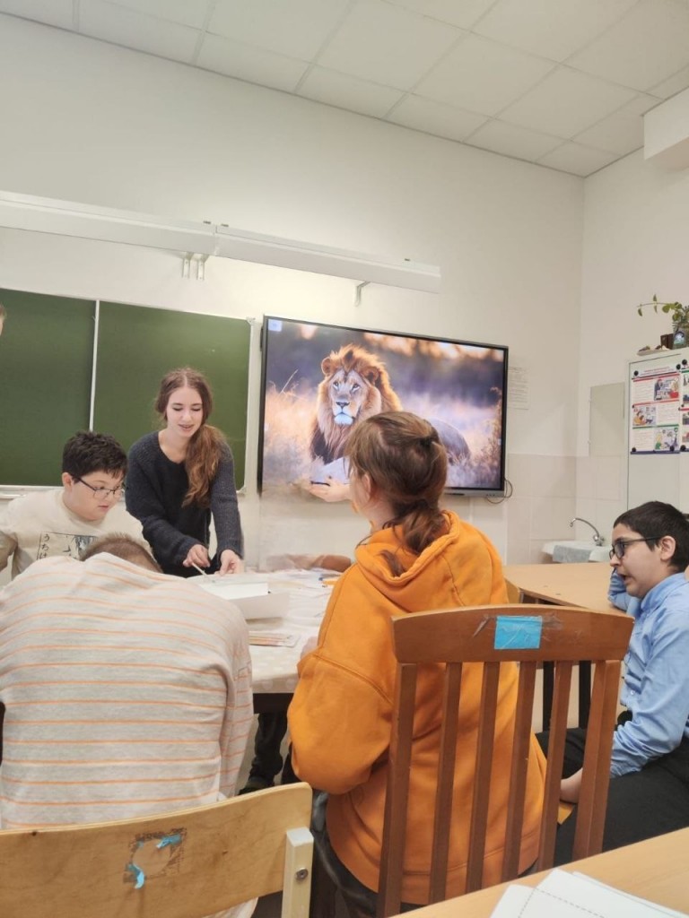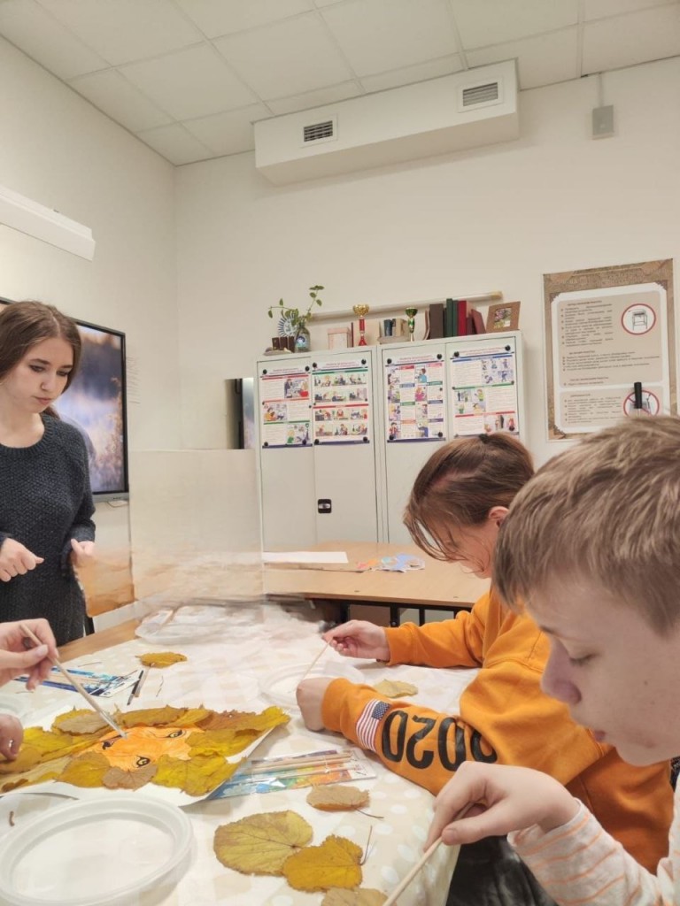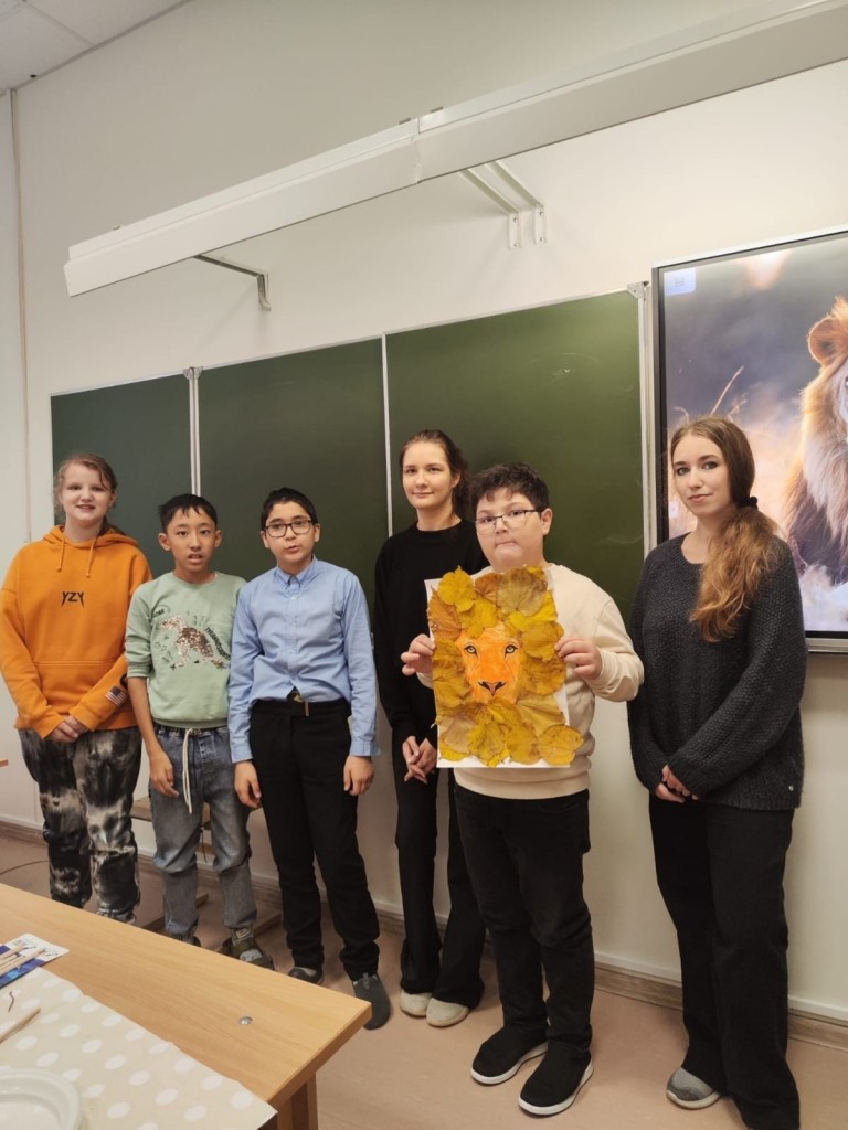 Ребята по очереди раскрашивали льва, и клеили гриву из листьев. Каждый внёс вклад в создание яркого образа "царя зверей".В творческой эстафете школьники продемонстрировали хорошие навыки коллективной работы и сотрудничества. Итог занятия, проведённого студентками - практикантками РГПУ им. А.И. Герцена Елизаветой Жмерницкой и Викторией Каландаровой - чудесный коллаж и позитивные эмоции всех участников.