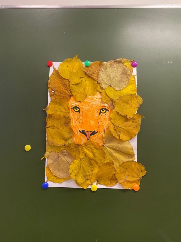 Коллаж "Лев на фоне осени" создали в группе продлённого дня учащиеся 5-7 классов.