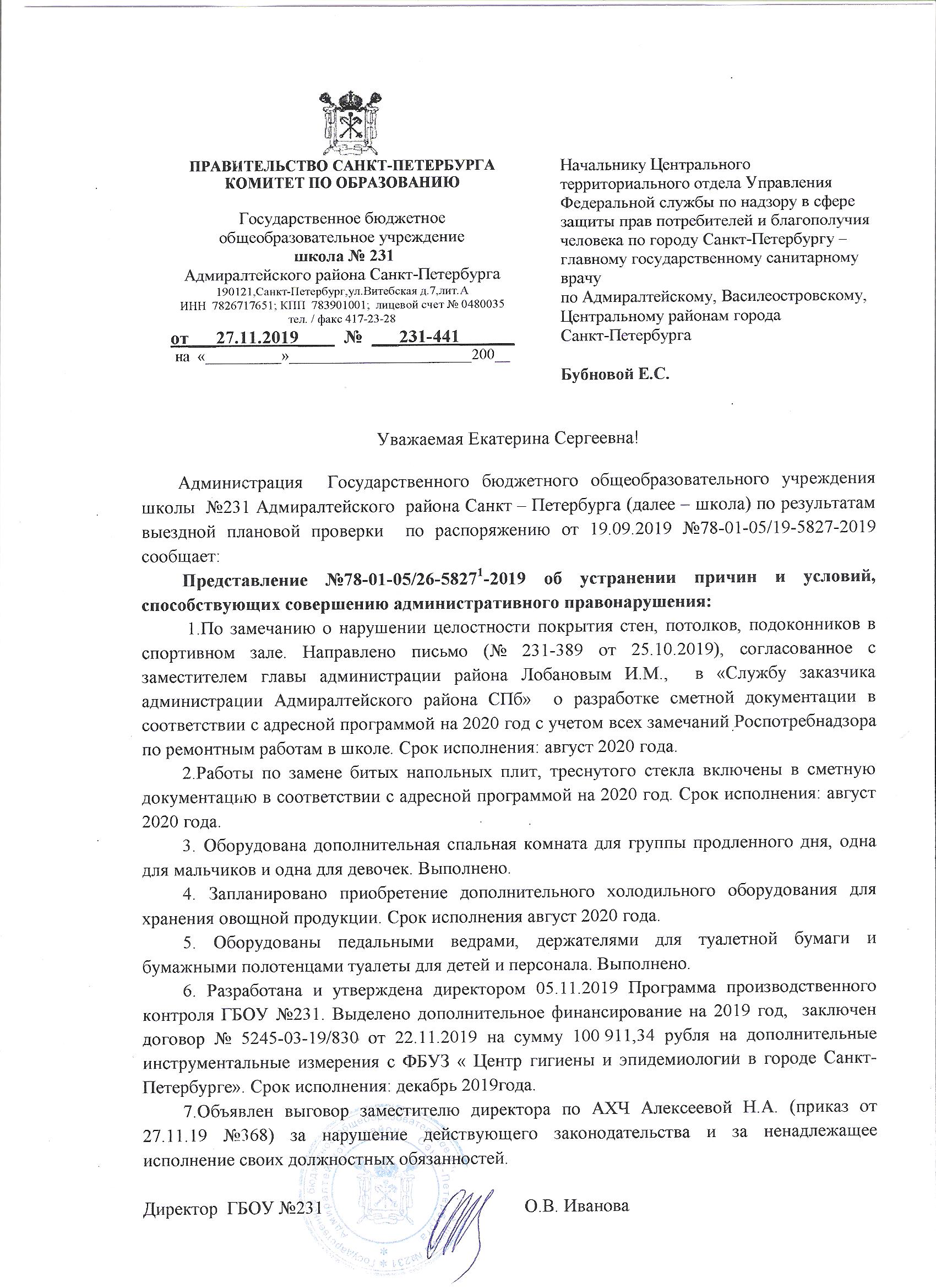Ответ на акт проверки 23-10-7-19 Школа 231